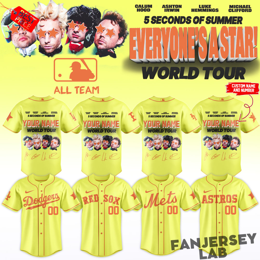The ultimate music-meets-baseball crossover is here! The 5 Seconds of Summer “EVERYONE’S A STAR!” World Tour 2026 Custom Baseball Jersey unites every MLB team with the global pop-rock phenomenon 5SOS in one epic limited-edition drop.