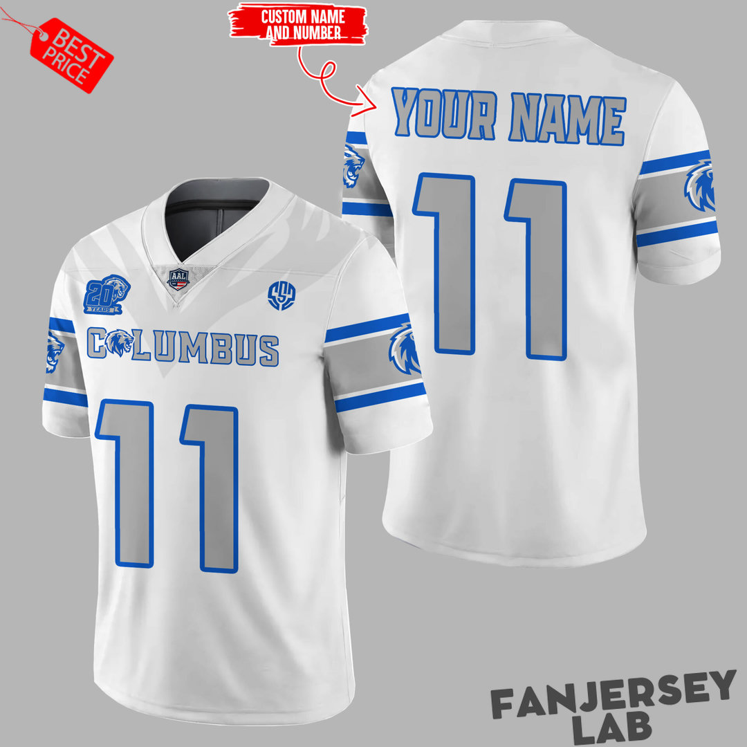 Columbus Lions White Out Custom Football Jersey