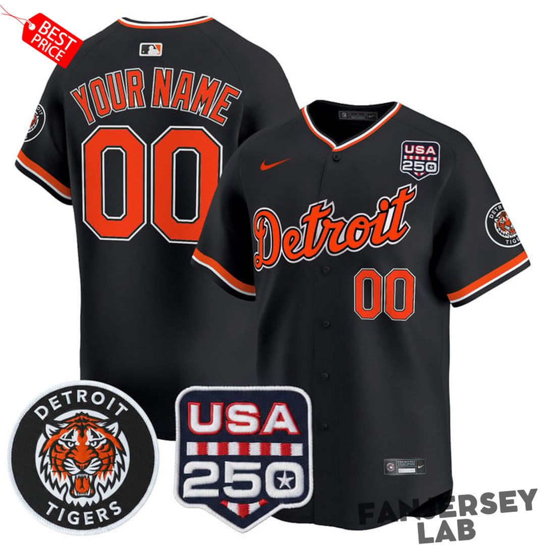 Rep the Old English D with style and honor America’s 250th. Order your custom Detroit Tigers 2026 Alternate Vapor x 250USA Jersey today and own a piece of baseball and history.