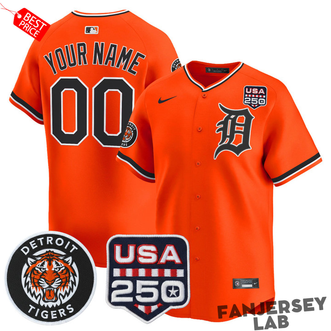 Celebrate America’s milestone and Tigers pride with the exclusive Detroit Tigers 2026 Alternate Vapor x 250USA Custom Baseball Jersey. This bold limited-edition alternate uniform honors the USA 250 celebration while delivering a sleek, modern look for the 2026 season.