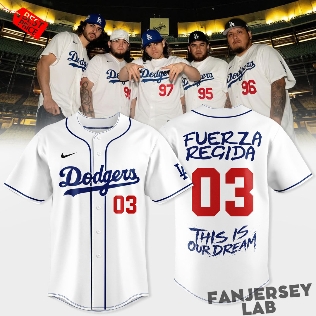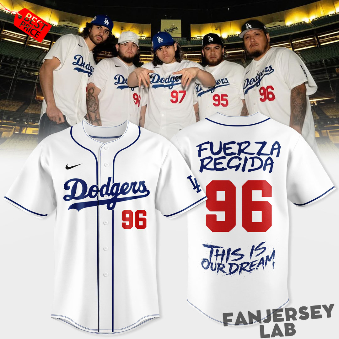 Not only does this jersey represent your love for the Dodgers, but it also serves as a tribute to the vibrant Latino culture and the musical prowess of Fuerza Regida. Whether you’re cheering from the bleachers or hitting the dance floor, this jersey will have you feeling confident and stylish.