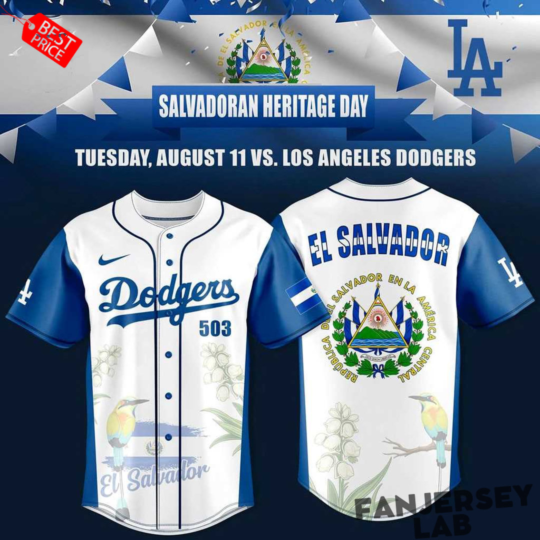 Los Angeles Dodgers Salvadoran Heritage Day Baseball Jersey
