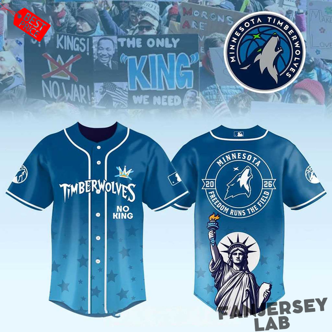Elevate your game-day style with the Minnesota Timberwolves No Kings No War 2026 Gameday Baseball Jersey. This striking piece of fan apparel combines the spirit of basketball with the timeless appeal of a classic baseball jersey, making it a must-have for every Timberwolves supporter. Crafted with premium, breathable fabric, this jersey ensures comfort whether you’re cheering from the stands or enjoying a casual day out.