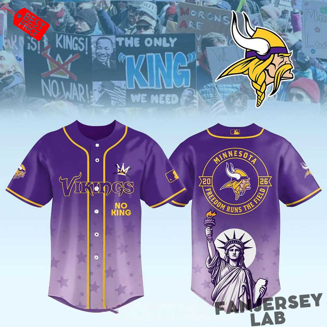 Minnesota Vikings No Kings No War 2026 Gameday Baseball Jersey