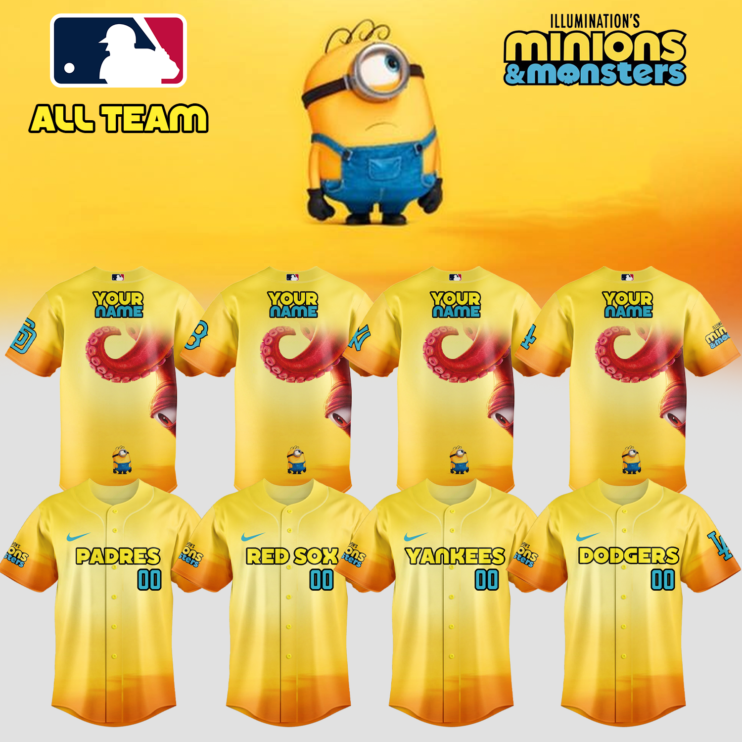 The ultimate crossover event is here! The MLB All Teams x “Minions & Monsters” 2026 Custom Baseball Jersey brings the chaotic fun of Illumination’s Minions and Monsters straight to your favorite ballpark.