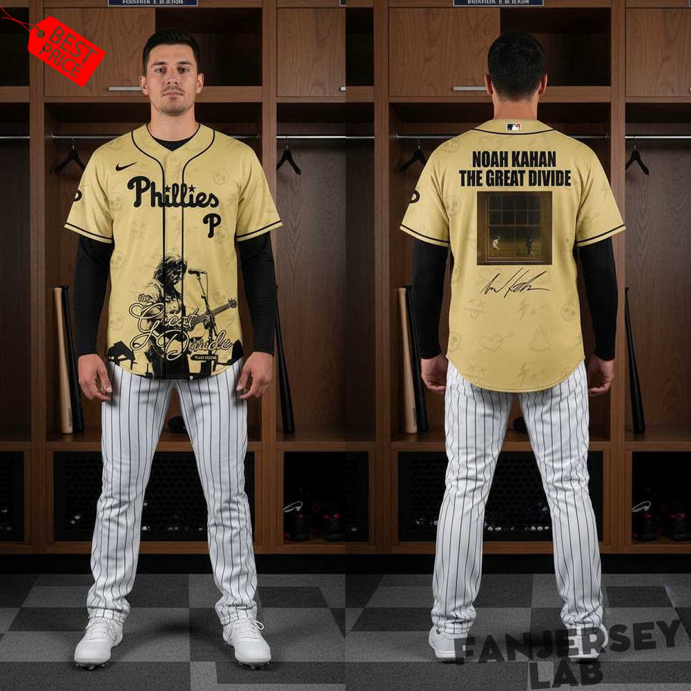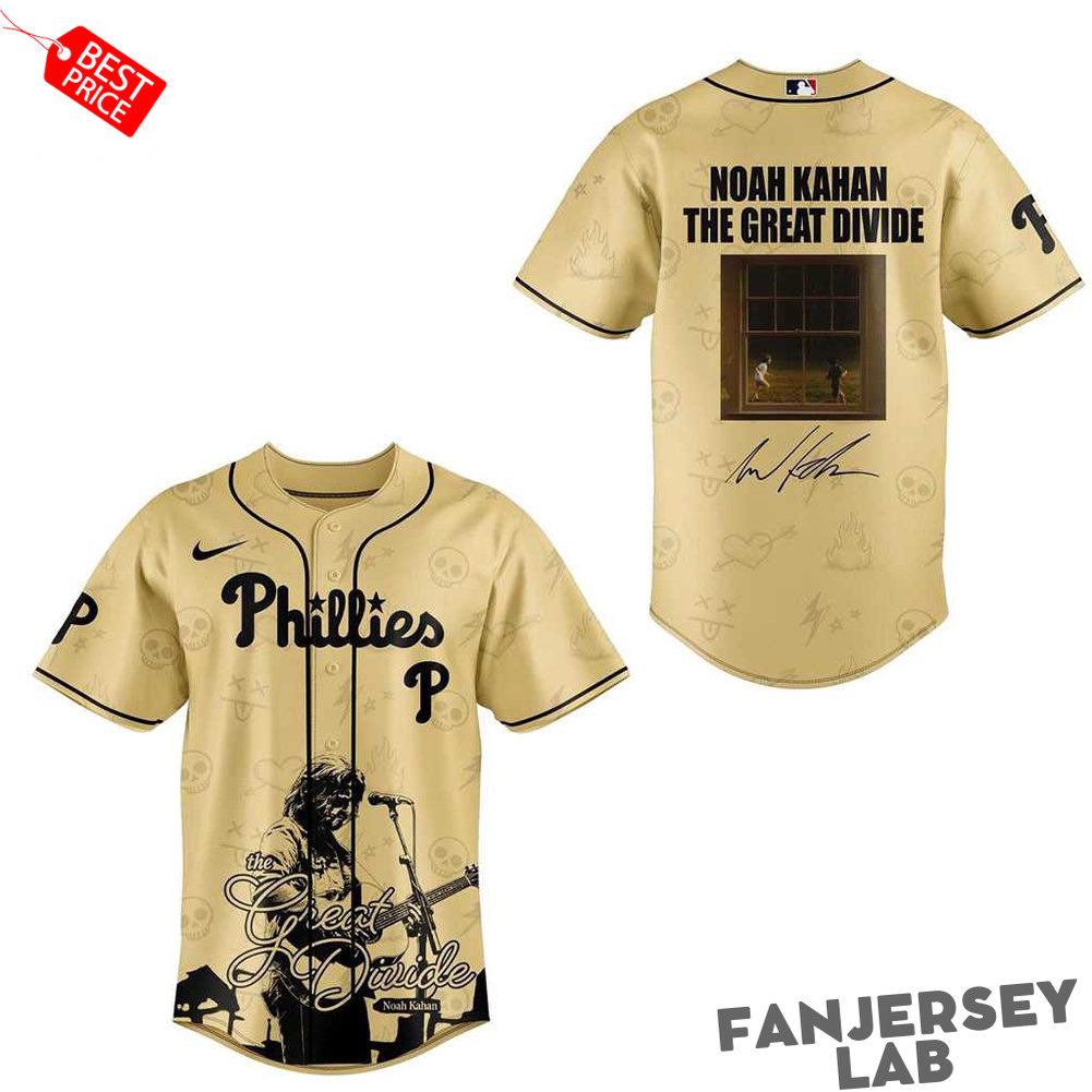 Bring folk-pop vibes to the diamond with the Philadelphia Phillies x Noah Kahan The Great Divide Tour 2026 Baseball Jersey!