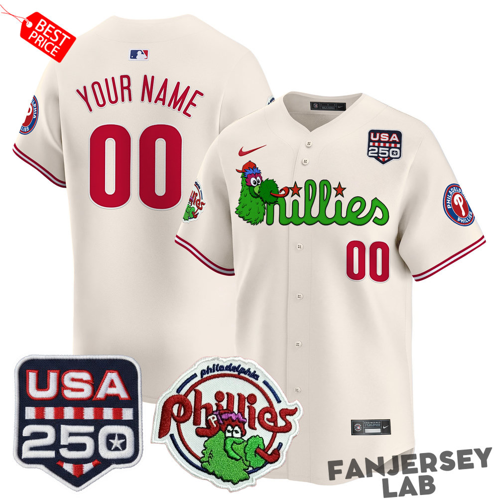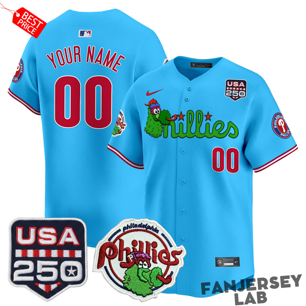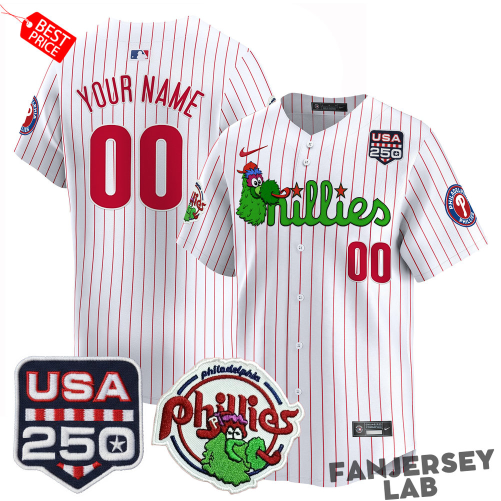 Philadelphia Phillies Phanatic & “250America” Custom Baseball Jersey