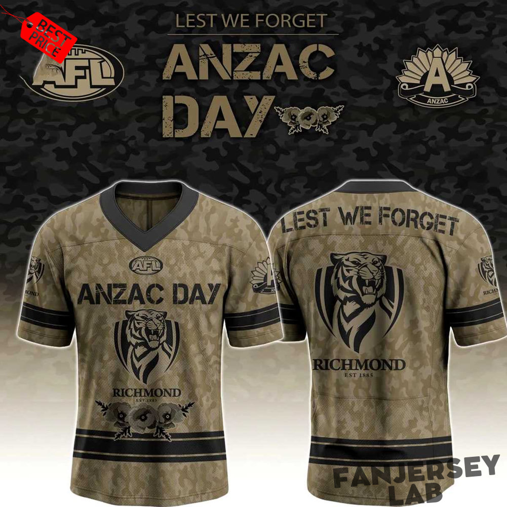Honor the fallen with the Richmond Tigers Anzac Day 2026 Football Jersey!