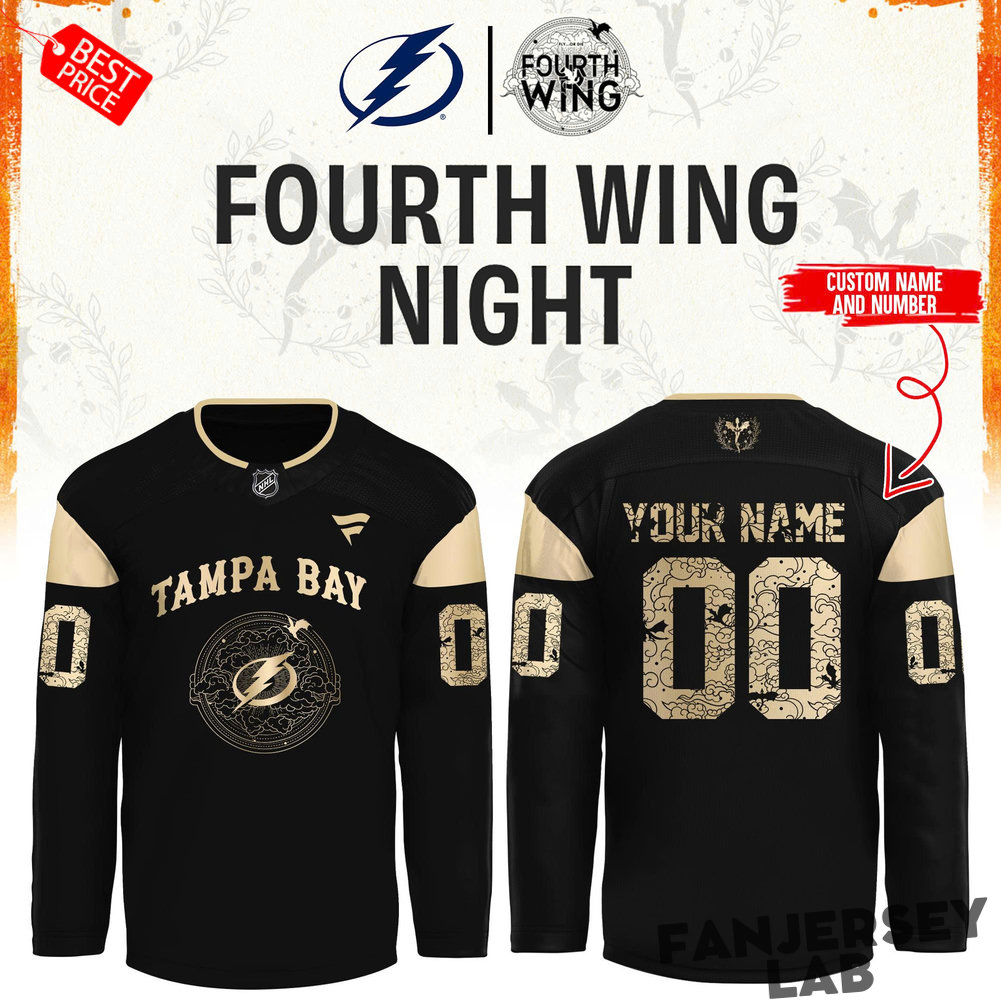 The Fourth Wing Night theme reflects the team’s commitment to community and camaraderie, showcasing your support for the Lightning while honoring the spirit of teamwork. The custom jersey allows you to personalize it with your favorite player’s name or your own, making it a standout piece in your collection. Featuring the iconic Lightning colors and logo, this jersey is more than just apparel—it’s a statement of loyalty and pride.