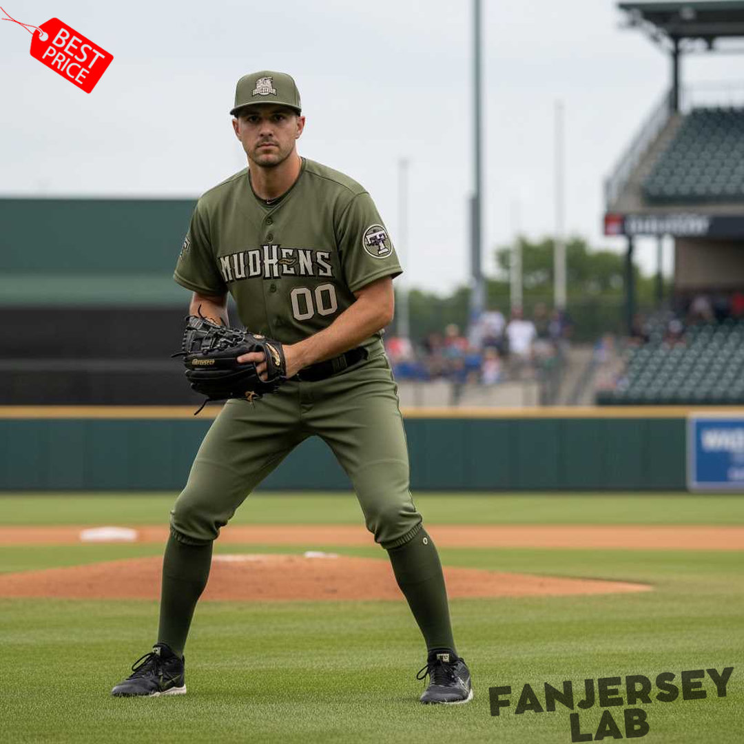 The jersey features a striking combination of the Mud Hens’ signature colors, accented with patriotic themes that pay tribute to the heroes in uniform. The front boasts the iconic Mud Hens logo, proudly displayed, while the back features the player’s name and number, adding a personalized touch. Unique details like stars and stripes subtly integrated into the design highlight the significance of Armed Forces Day, making this jersey more than just a piece of clothing—it’s a symbol of respect and appreciation.