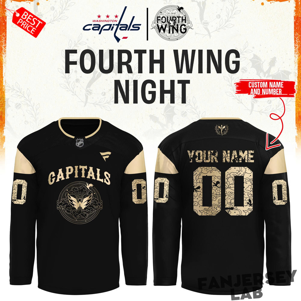 Celebrate the epic crossover between the ice and the skies with the Washington Capitals Fourth Wing Night Custom Hockey Jersey. This limited-edition jersey pays tribute to the massively popular Fourth Wing series during the Capitals’ special Fourth Wing Night.